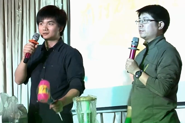 节目开始,首先表演的是国展项目置业顾问,《百家讲坛》边讲边唱,模仿的惟妙惟肖。